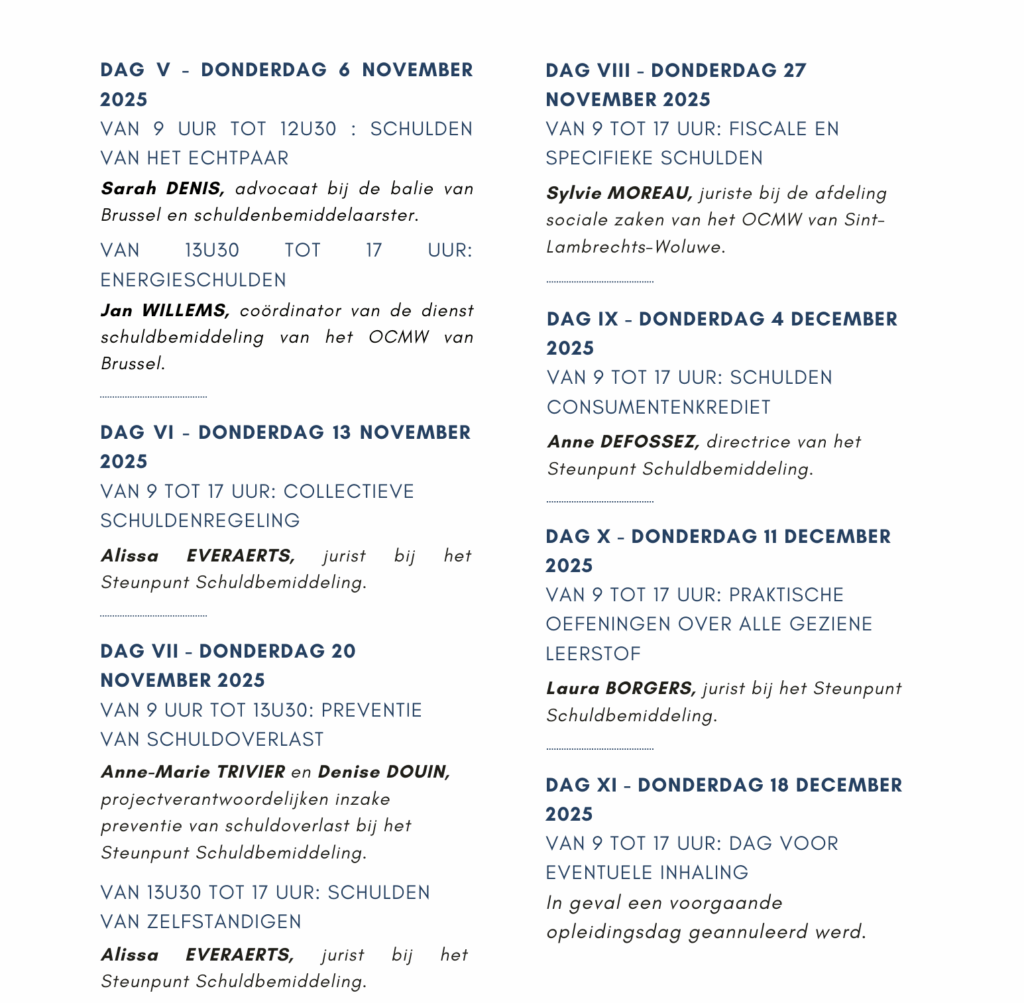 Opleidingen & Evenementen Basisopleiding schuldbemiddeling (in het Frans) [VOLZET]